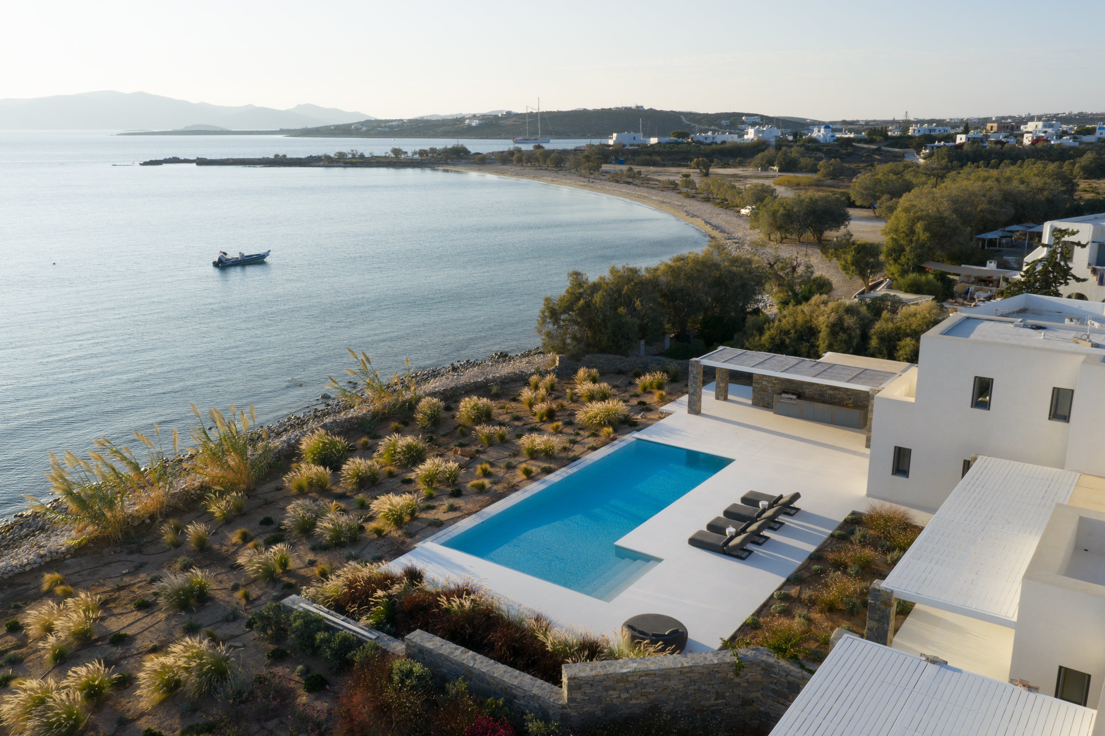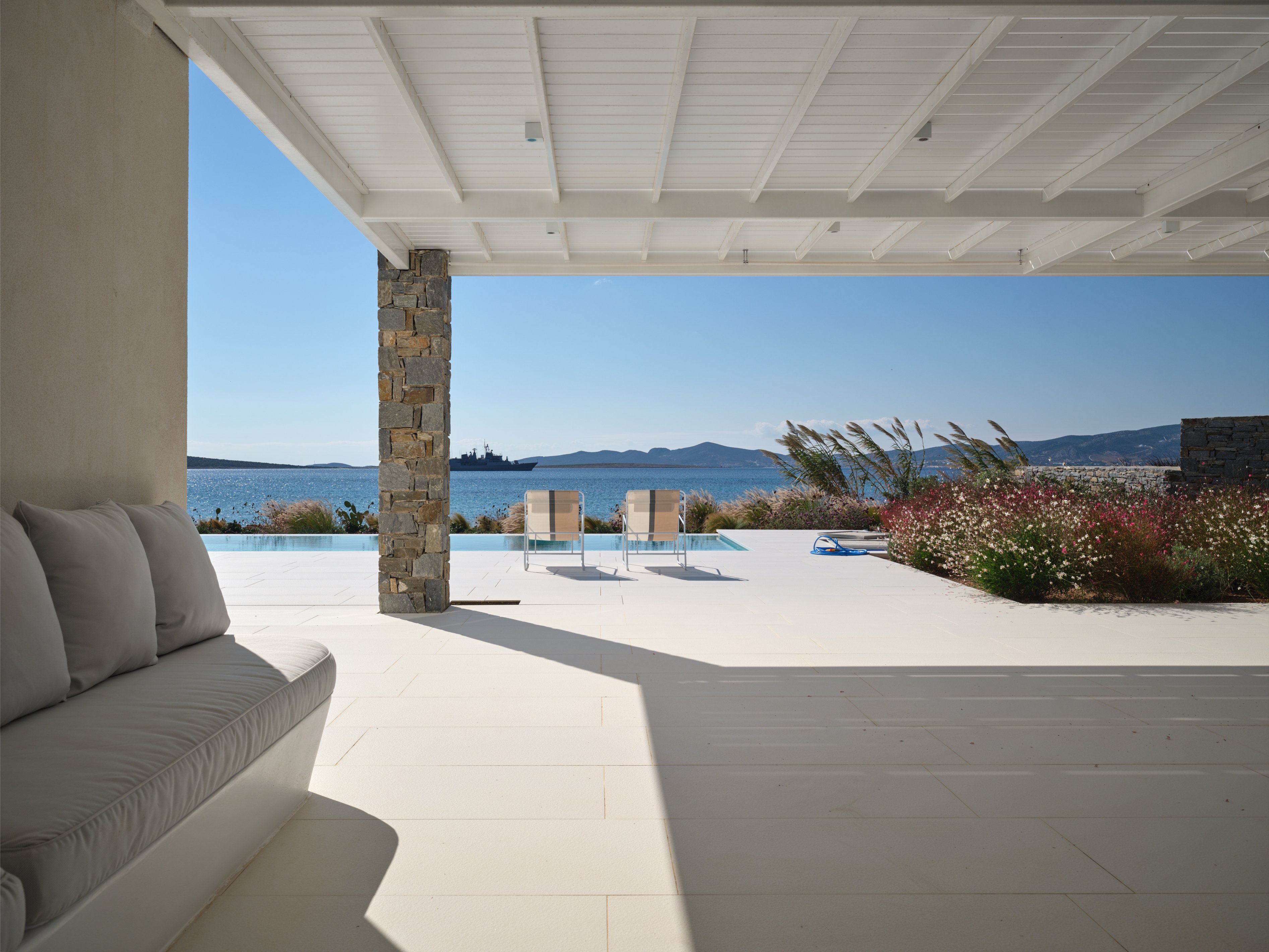 Outdoors, guests can enjoy a private swimming pool, comfortable lounge areas and stylish outdoor dining spaces designed for long summer days and evenings by the sea. With the beach only moments away and traditional seaside tavernas within walking distance, Villa Ammos offers an effortless coastal living experience in beautiful Paros.