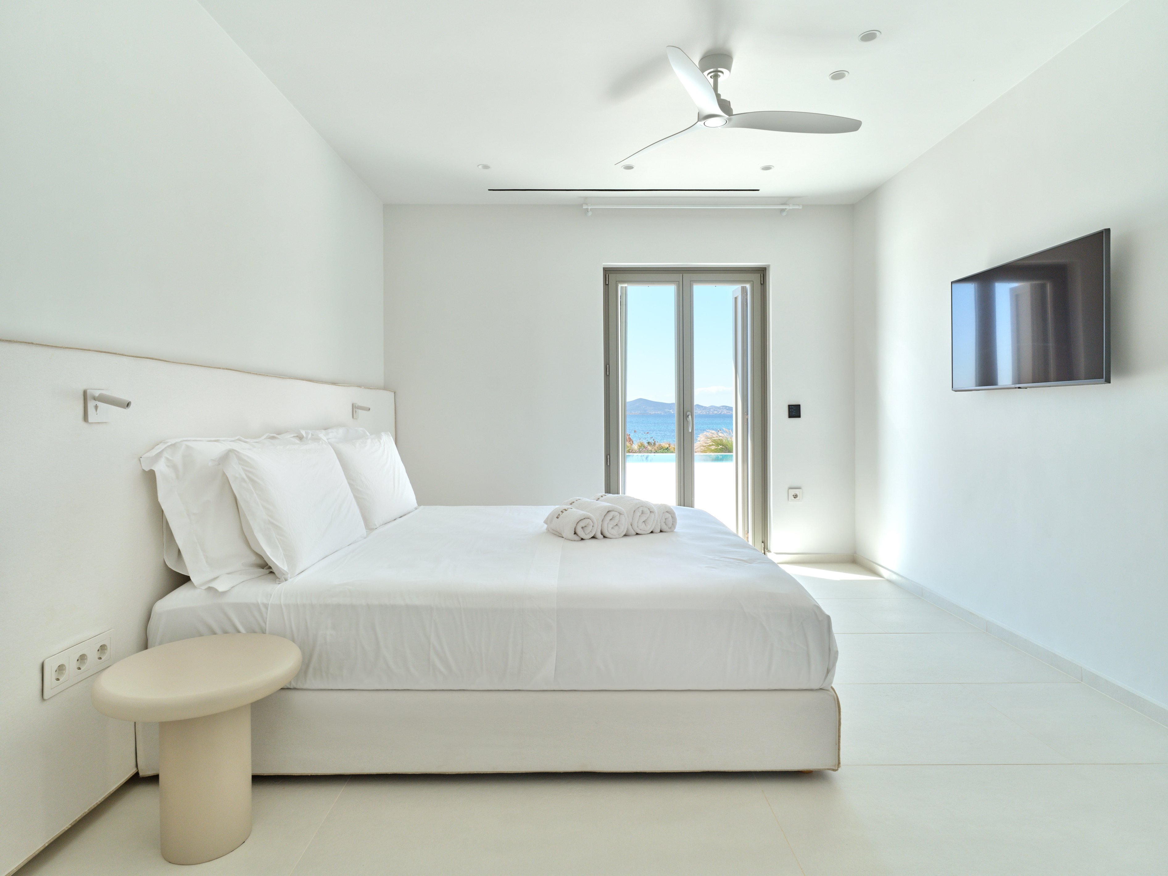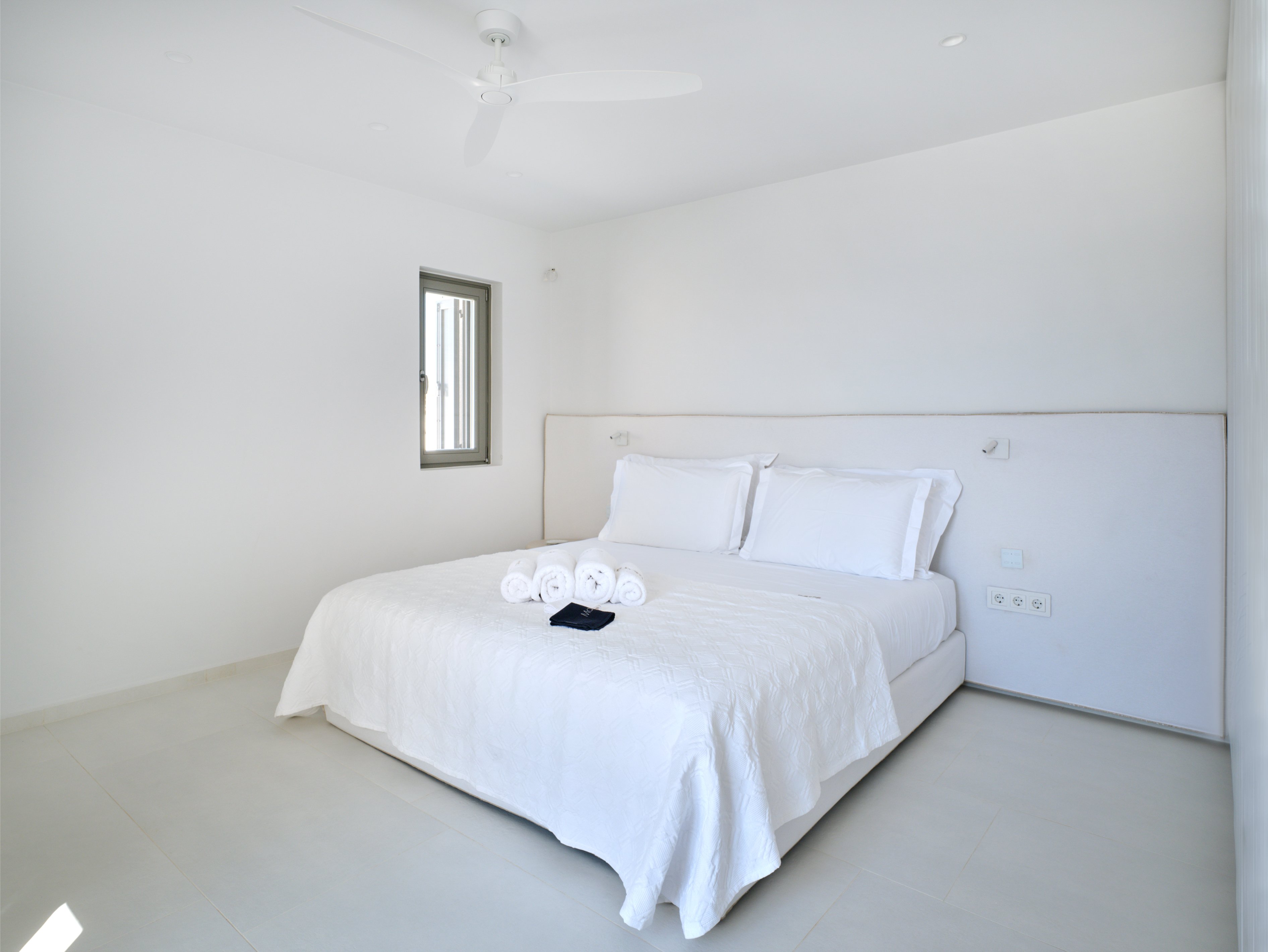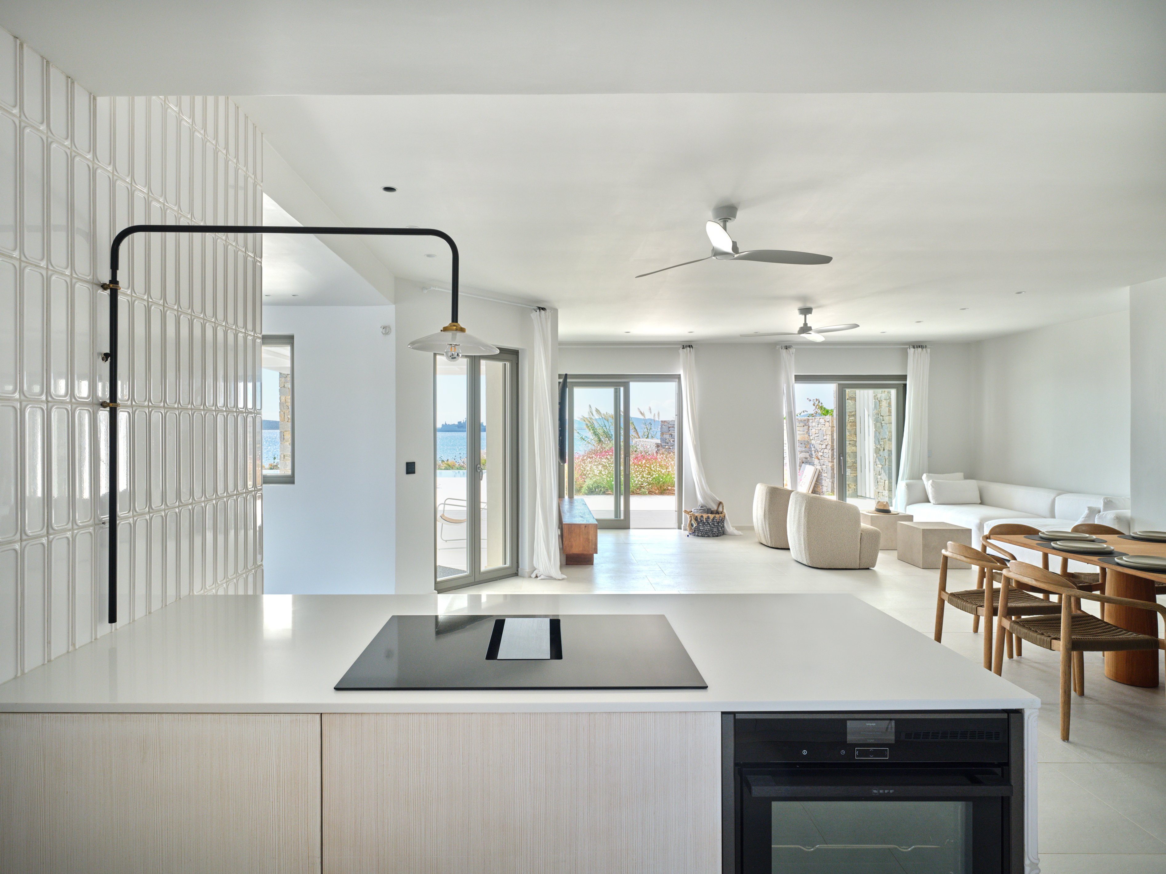The property features five elegant bedrooms plus an additional guest or staff room, making it ideal for families or groups seeking a relaxing island escape. Bright interiors, clean architectural lines and natural tones create a warm and sophisticated atmosphere throughout the home.