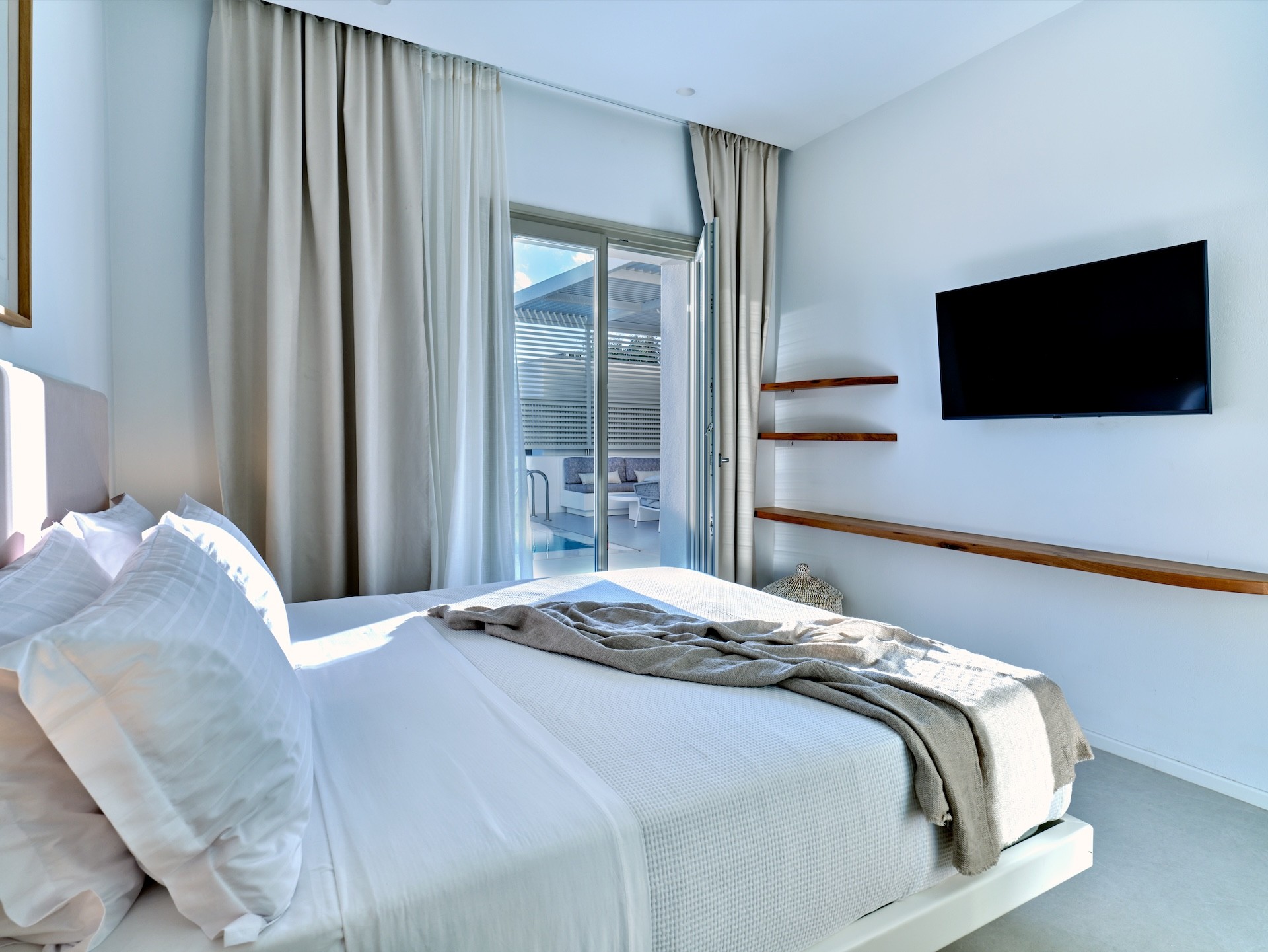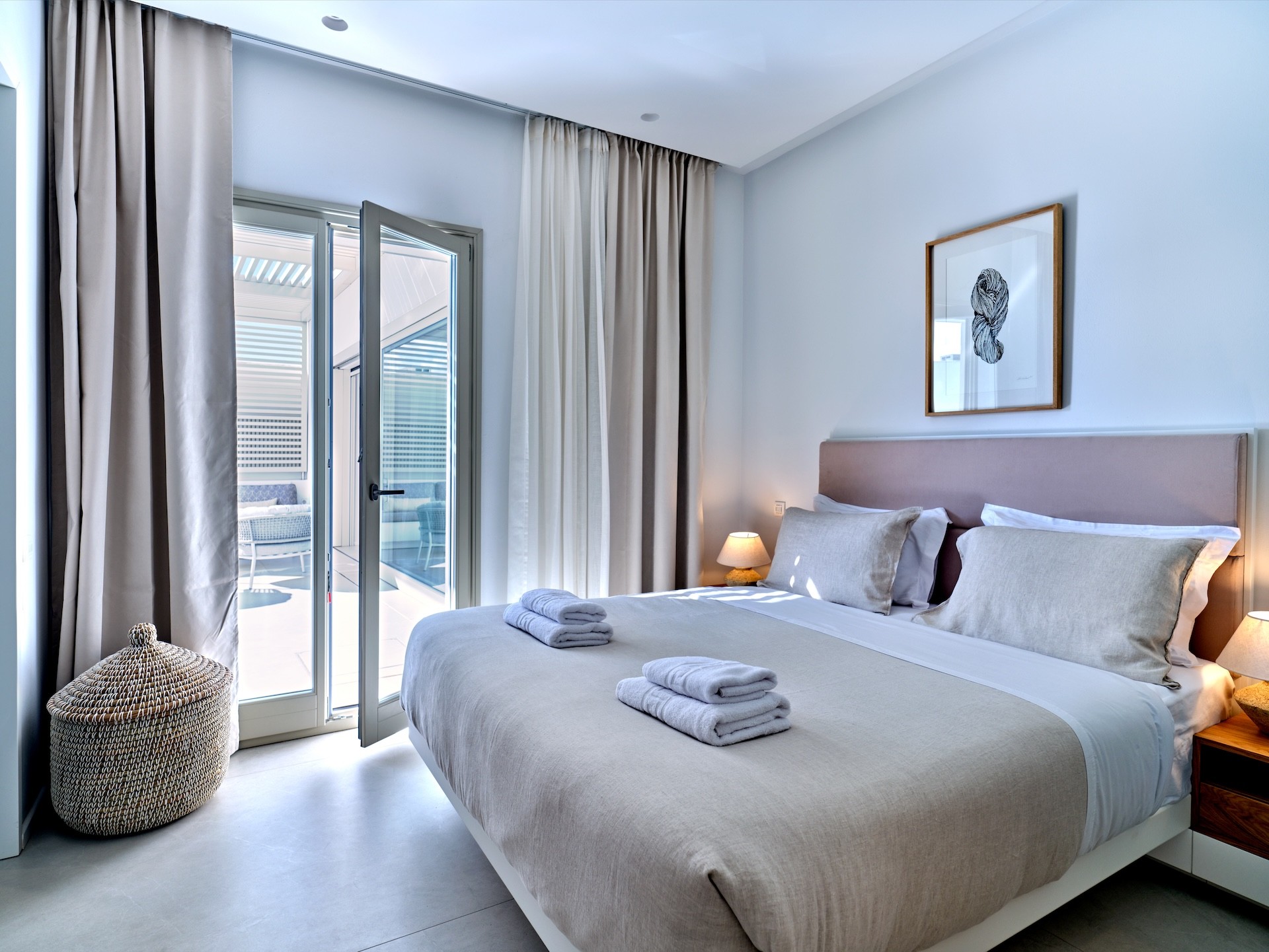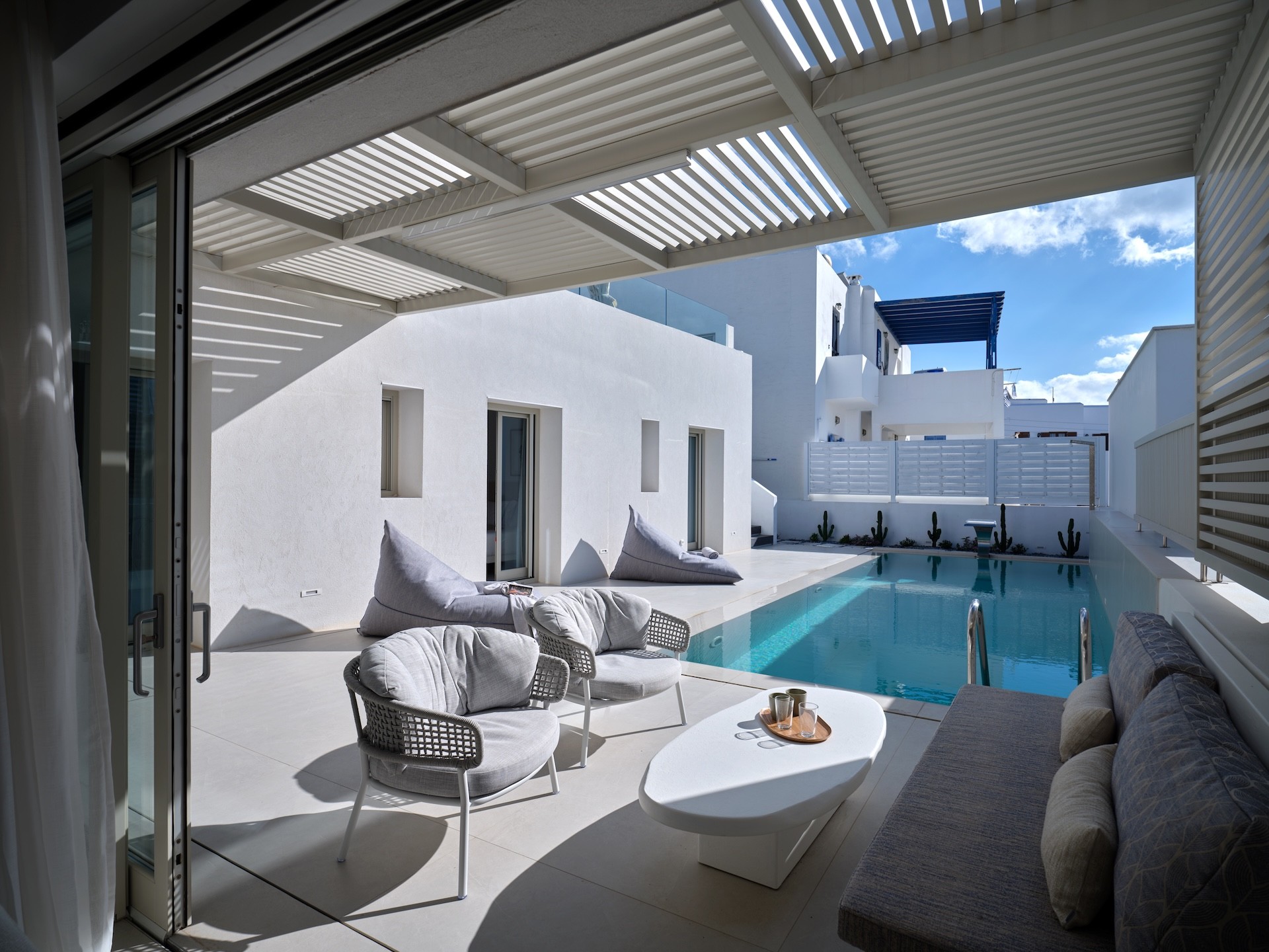 The villa is conveniently located within walking distance of Piperi Beach and Naousa, making it the perfect location for enjoying the beach during the day and the nightlife of Naousa in the evening.