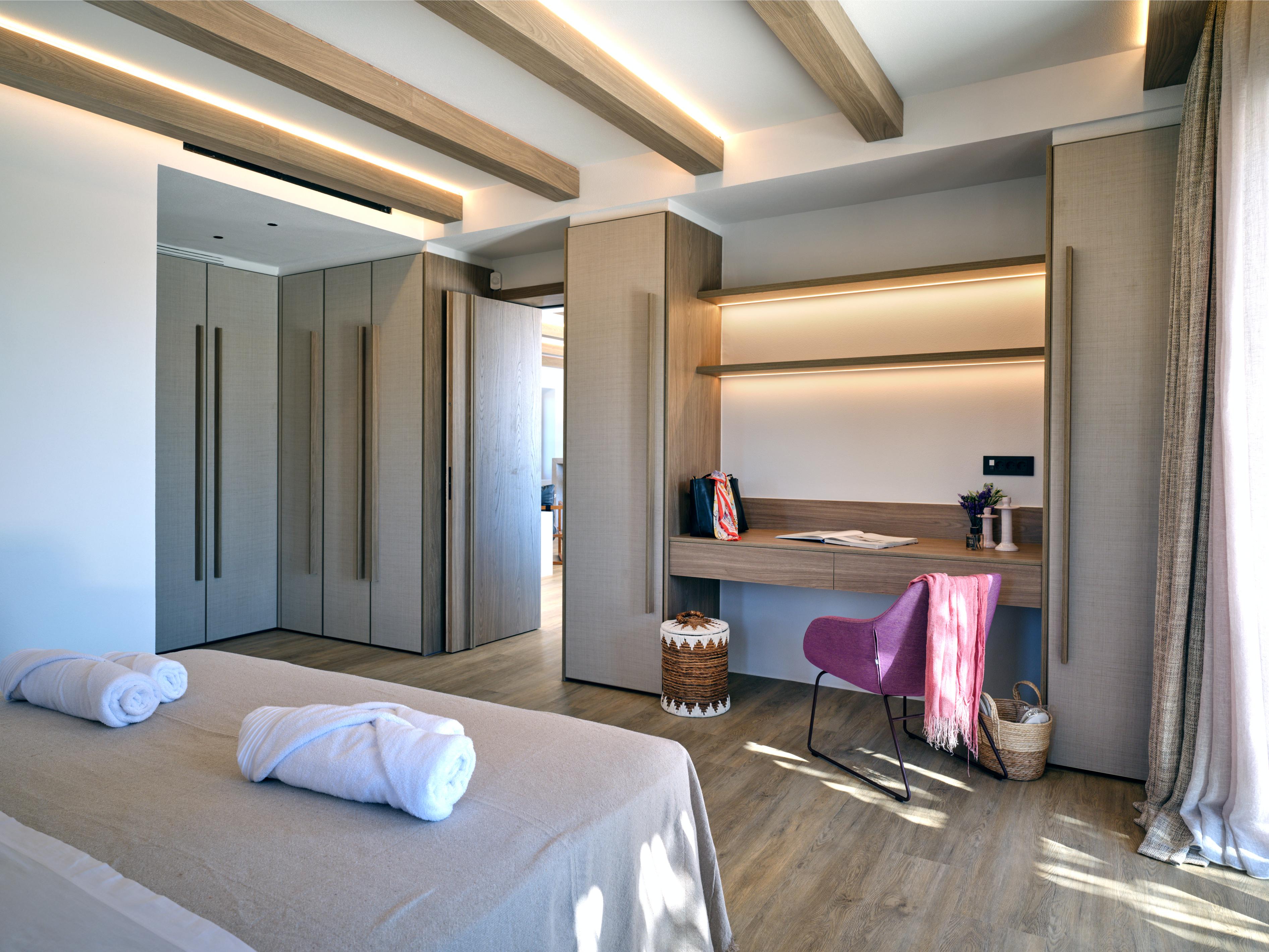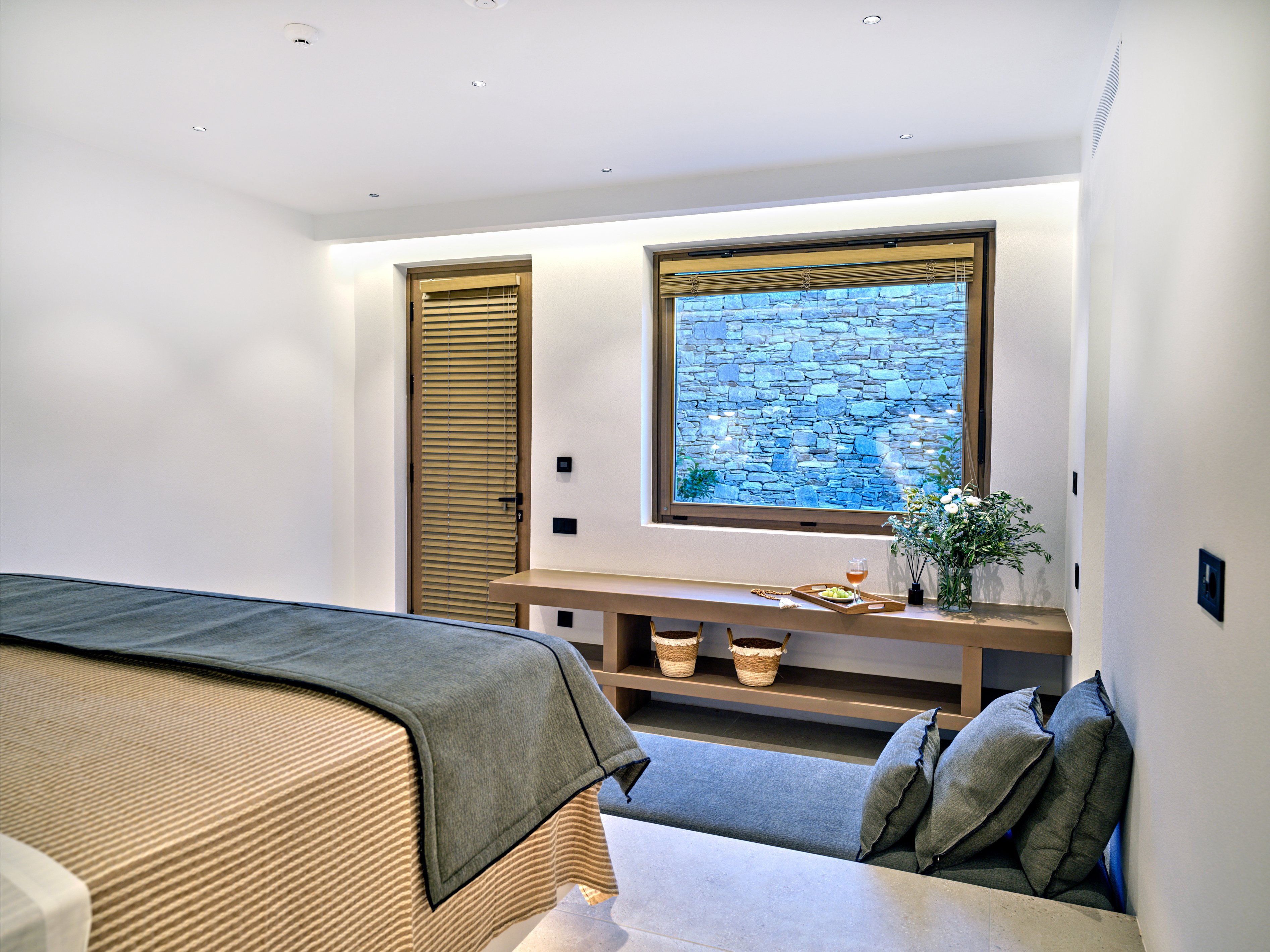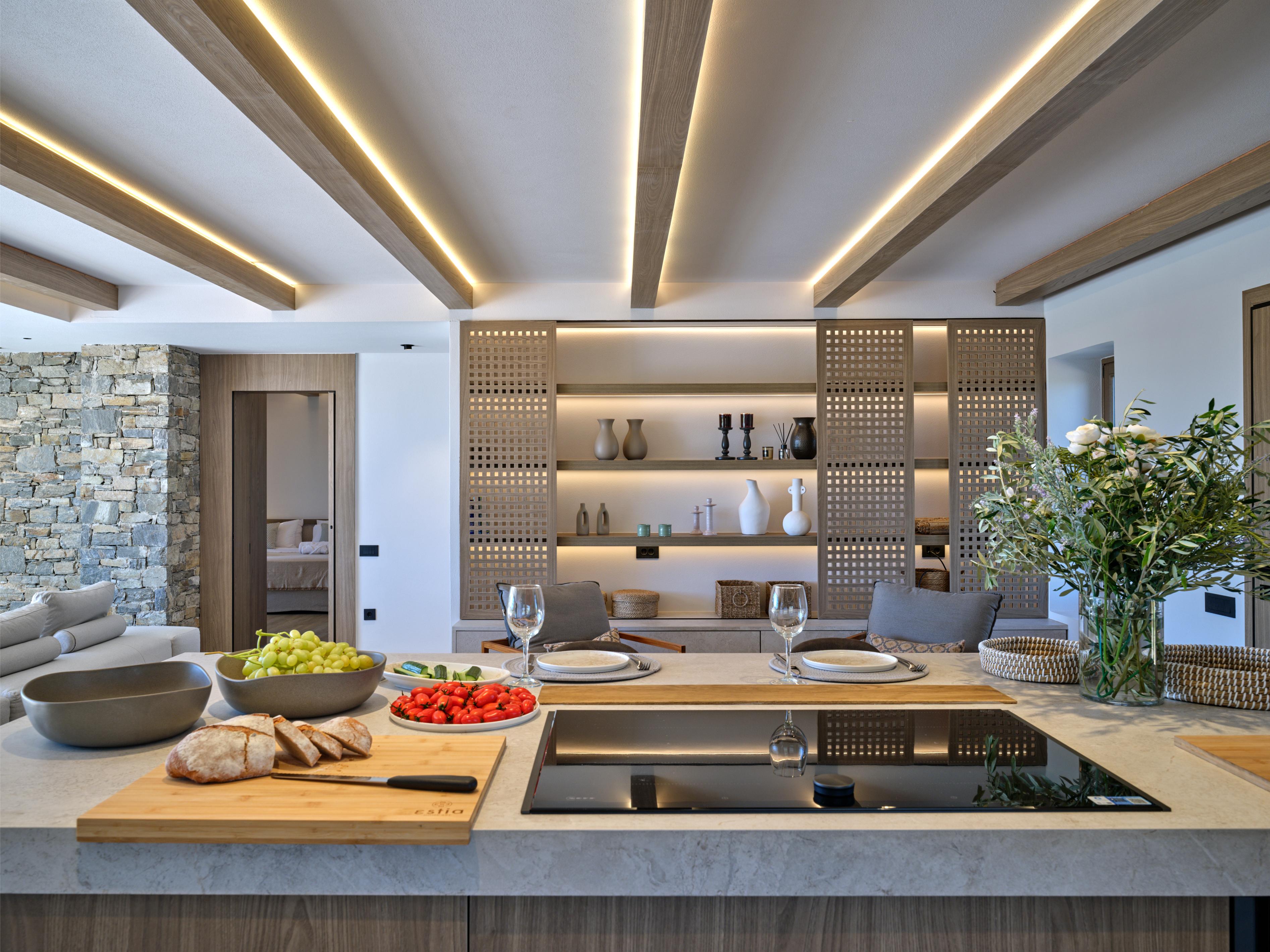 For wellness, Villa Fos offers a fully equipped private gym and a two-person Sunlighten infrared sauna, delivering a resort-style experience in one of Paros' most tranquil settings.