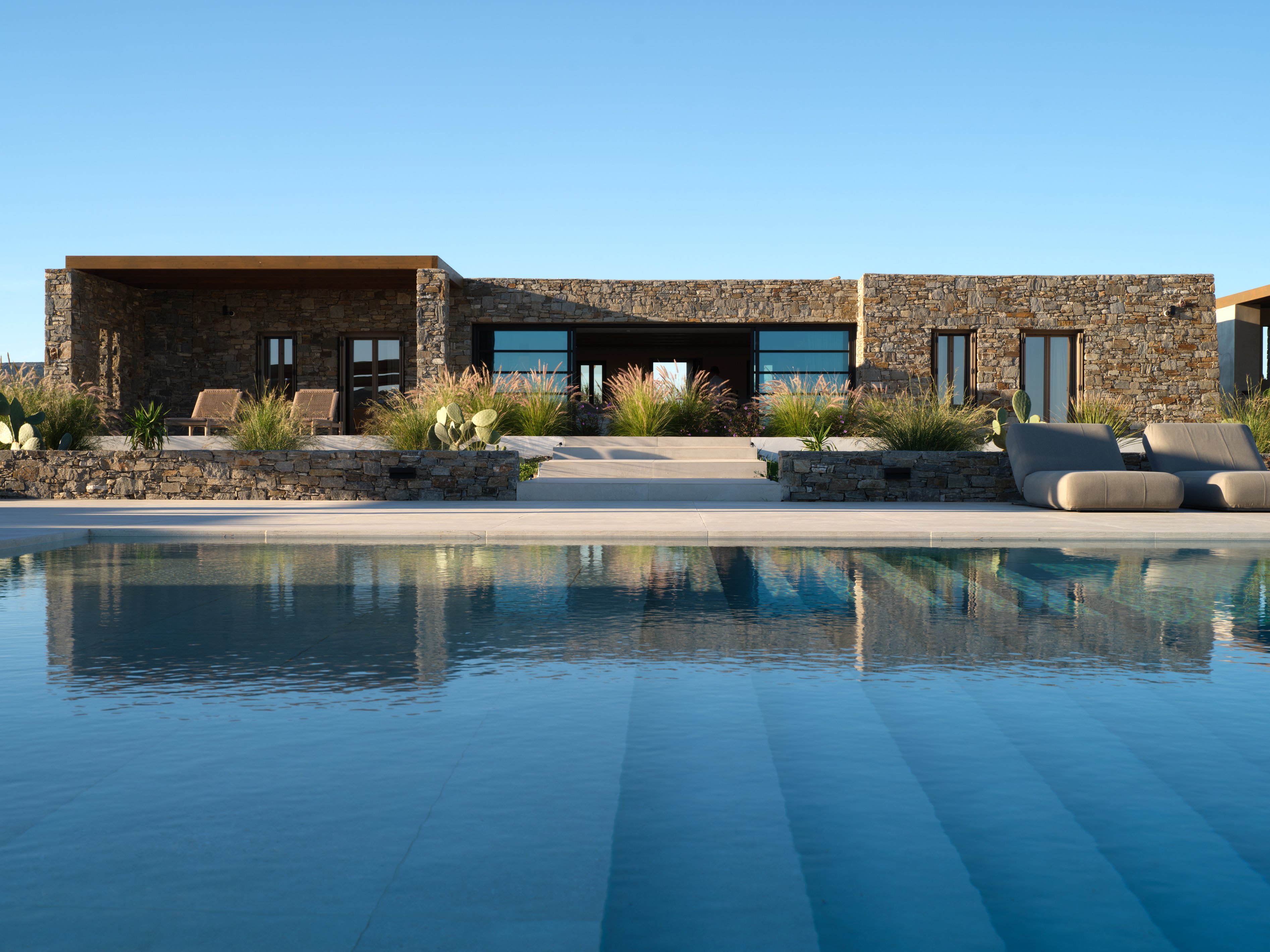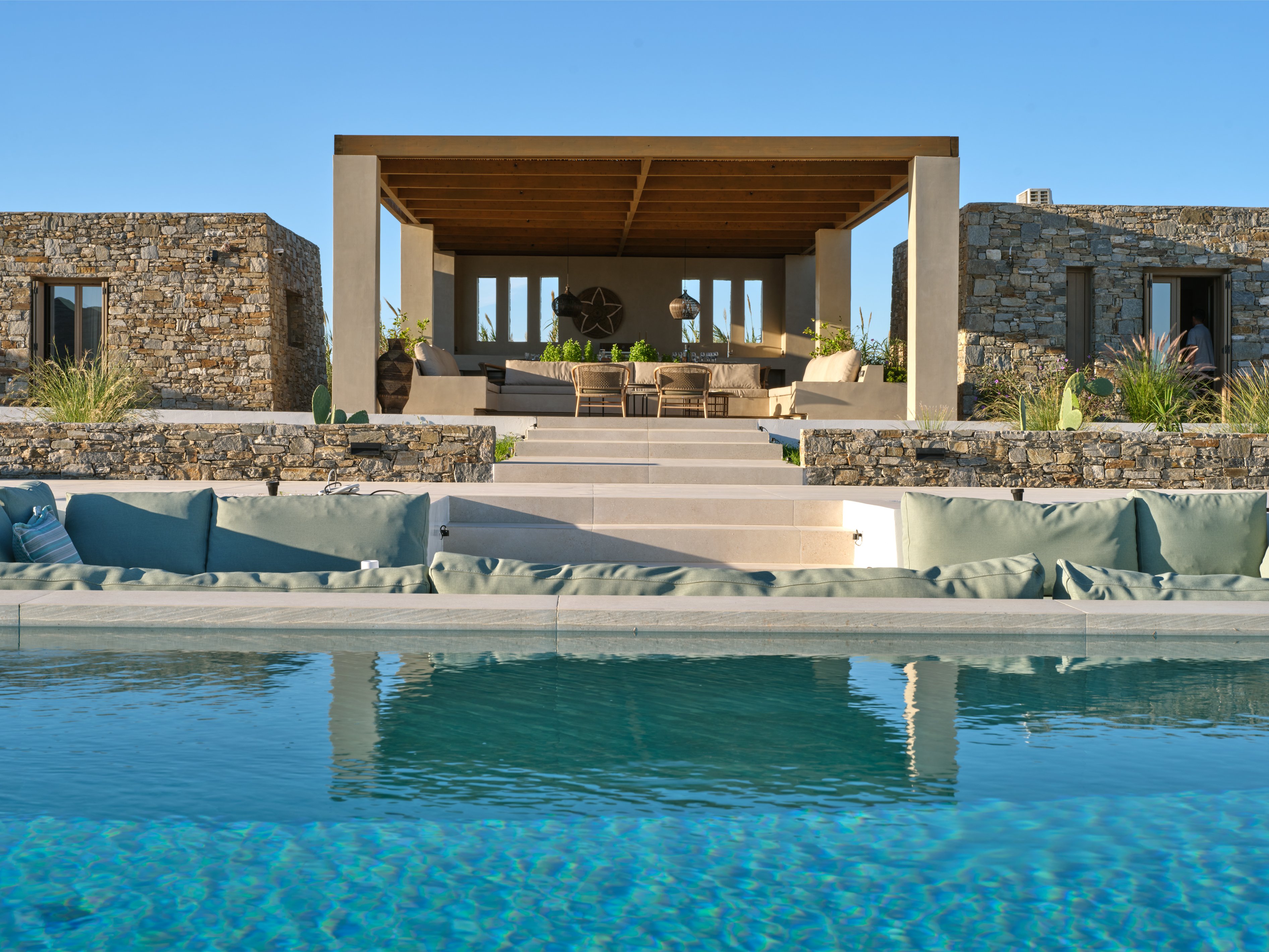 Villa Fos is an understated luxury retreat on Paros' peaceful Molos Beach, just 15 minutes from Naoussa. Designed for privacy and effortless island living, it features seven elegant double bedrooms with en-suite bathrooms, plus an independent apartment ideal for staff, a nanny, or extra guests.