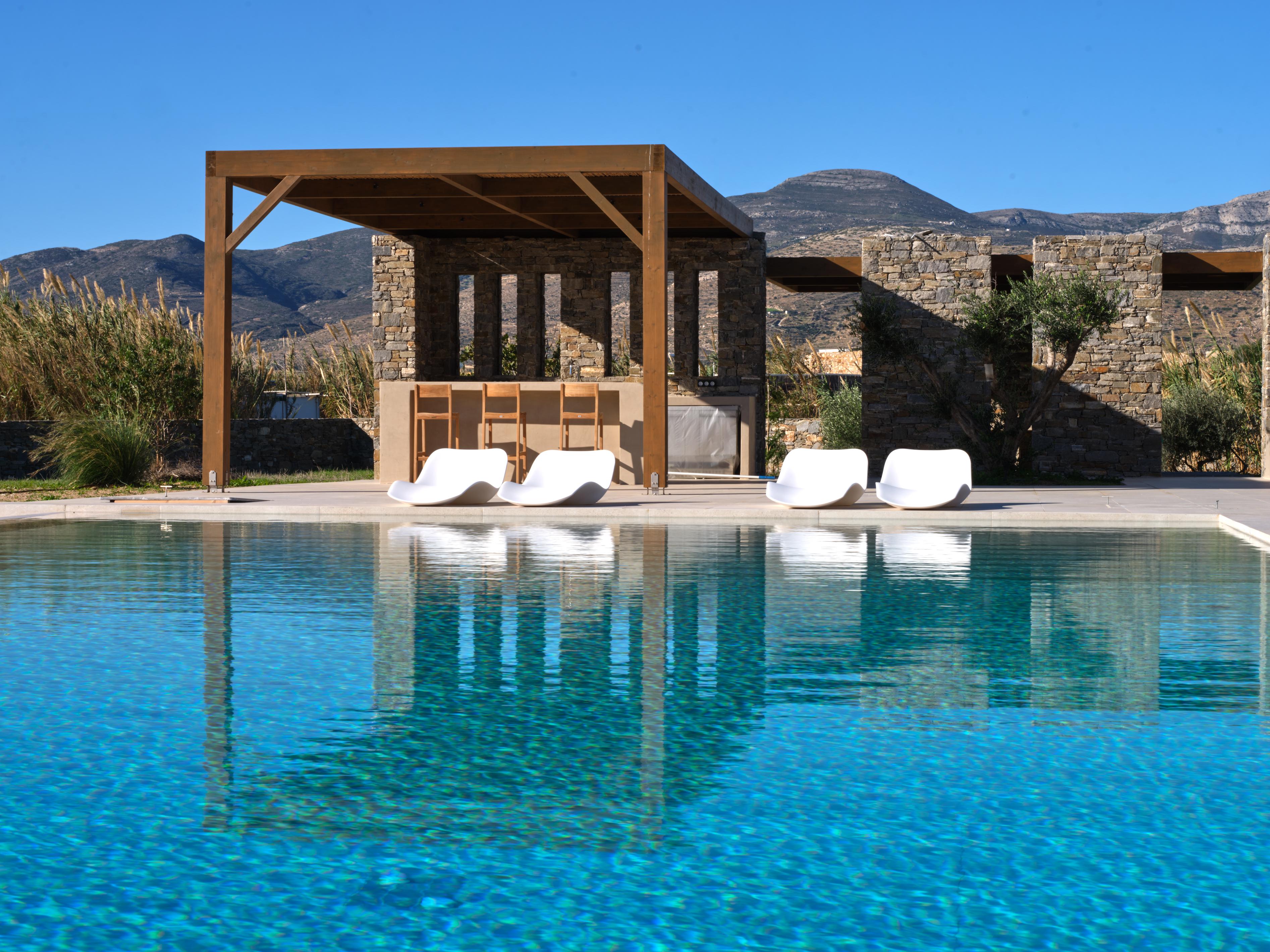 Villa Fos is located in the peaceful Molos Valley on the northeastern side of Paros, just minutes from the beautiful Molos Beach and the charming fishing village of Naoussa. Guests can enjoy nearby traditional tavernas, seaside restaurants and beach bars, as well as activities such as swimming, windsurfing, hiking and boat trips around the island. The area offers the perfect balance of tranquility and easy access to Paros’ vibrant dining, nightlife and cultural attractions.
