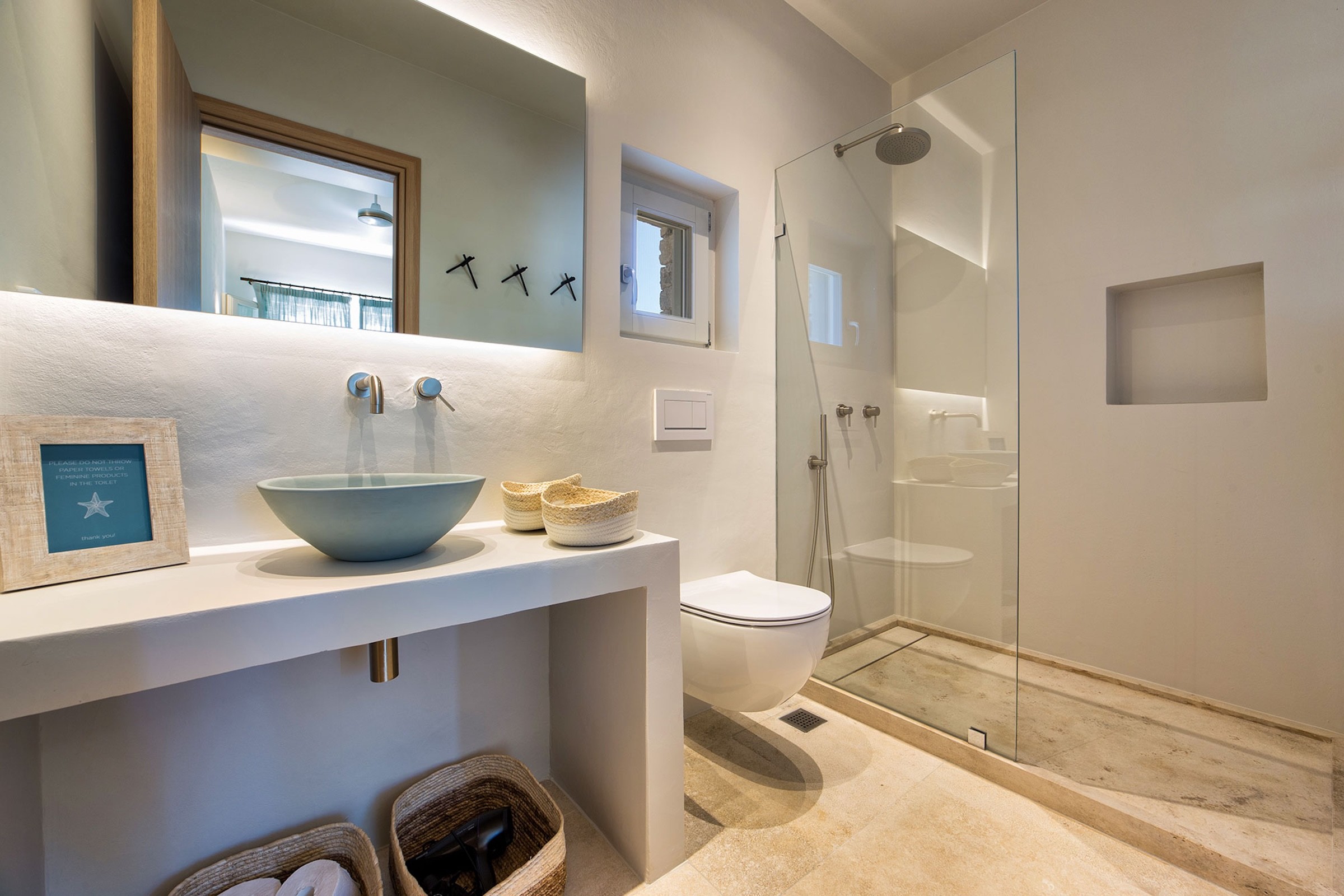 This villa’s location provides a peaceful and serene retreat, away from the busy areas of Paros, offering a quiet and relaxing vacation experience just steps from the sea.