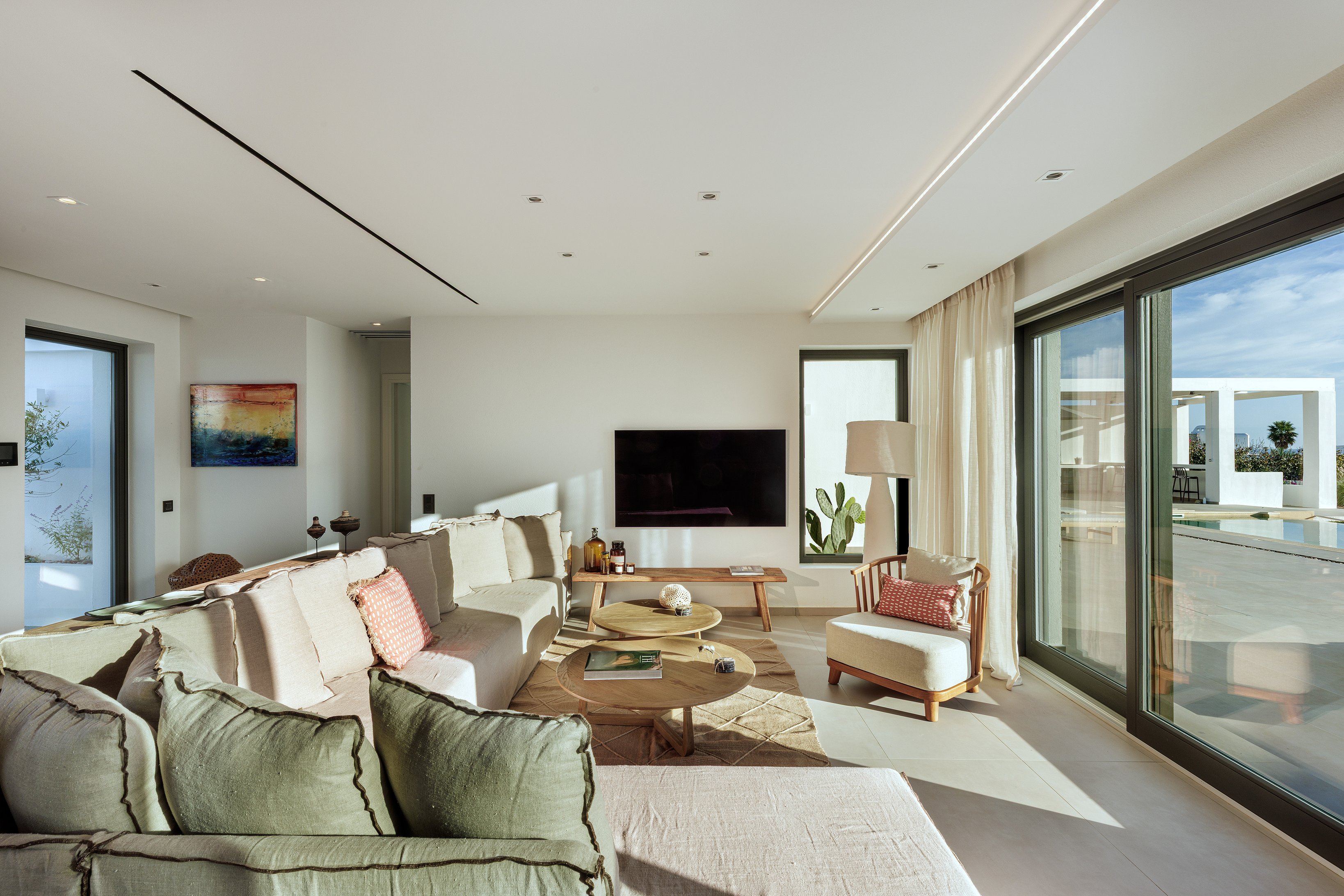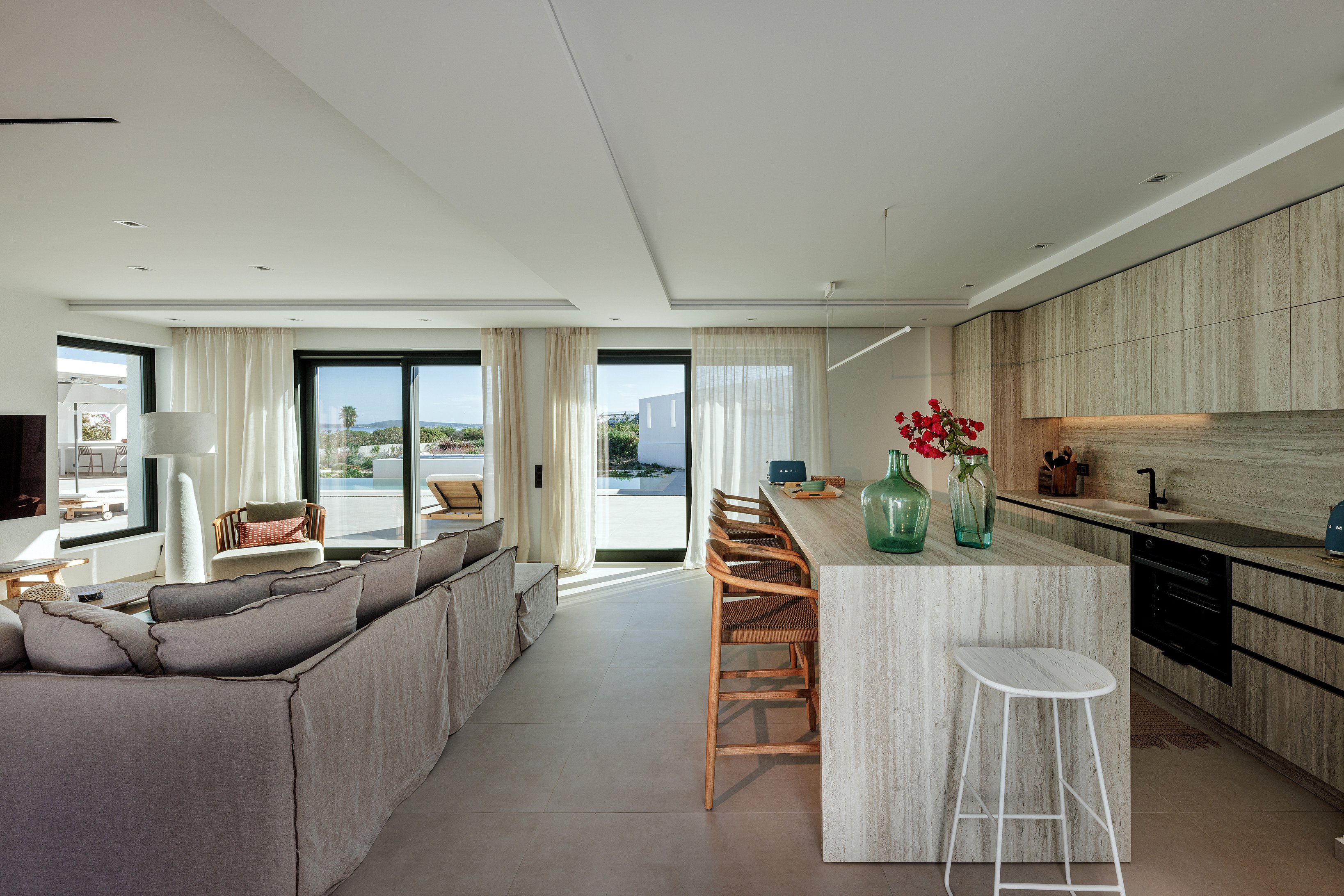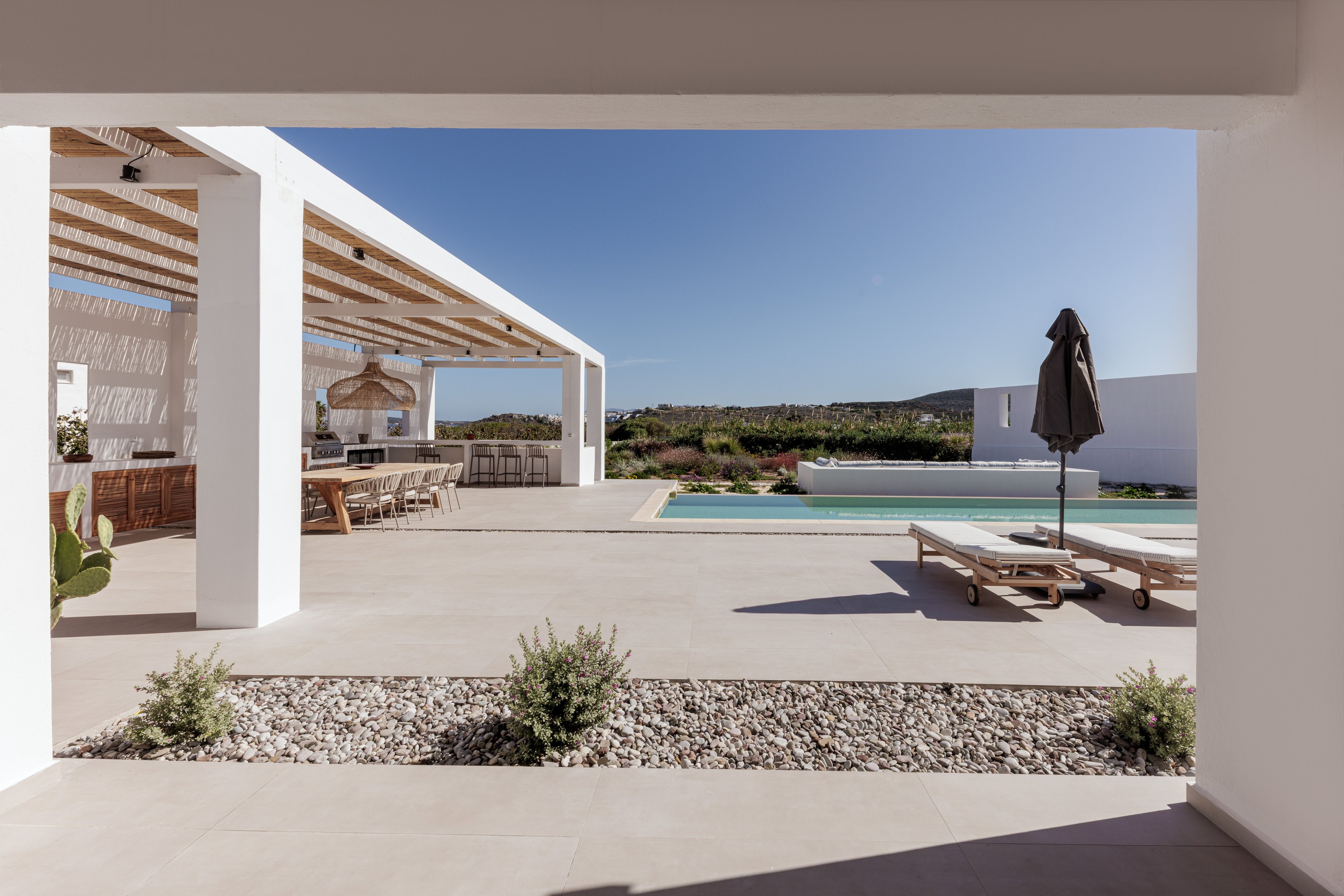 Nestled in the exclusive Kolymbithres area, Villa Petra is just minutes from Naousa and its charming harbor, boutique shops, and vibrant dining scene. Guests can explore nearby sandy beaches, swim in the crystal-clear waters, or enjoy activities such as sailing, snorkeling, hiking, and local wine tasting. The villa’s location perfectly balances tranquility and convenience, offering easy access to Paros’ cultural sites, lively nightlife, and scenic coastal walks while remaining a private and serene retreat.