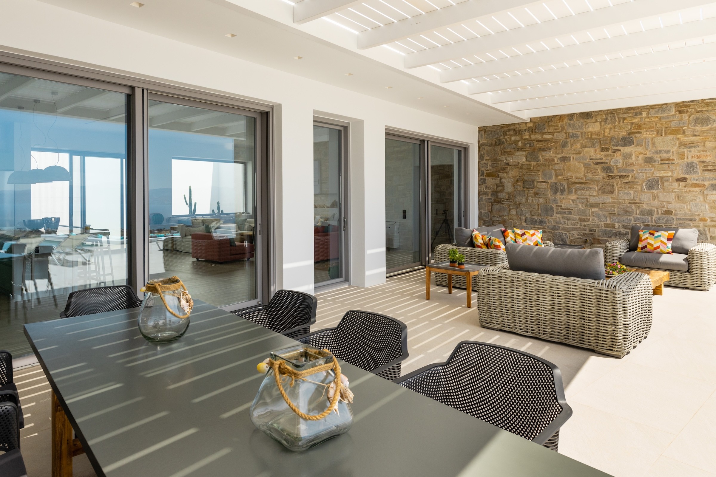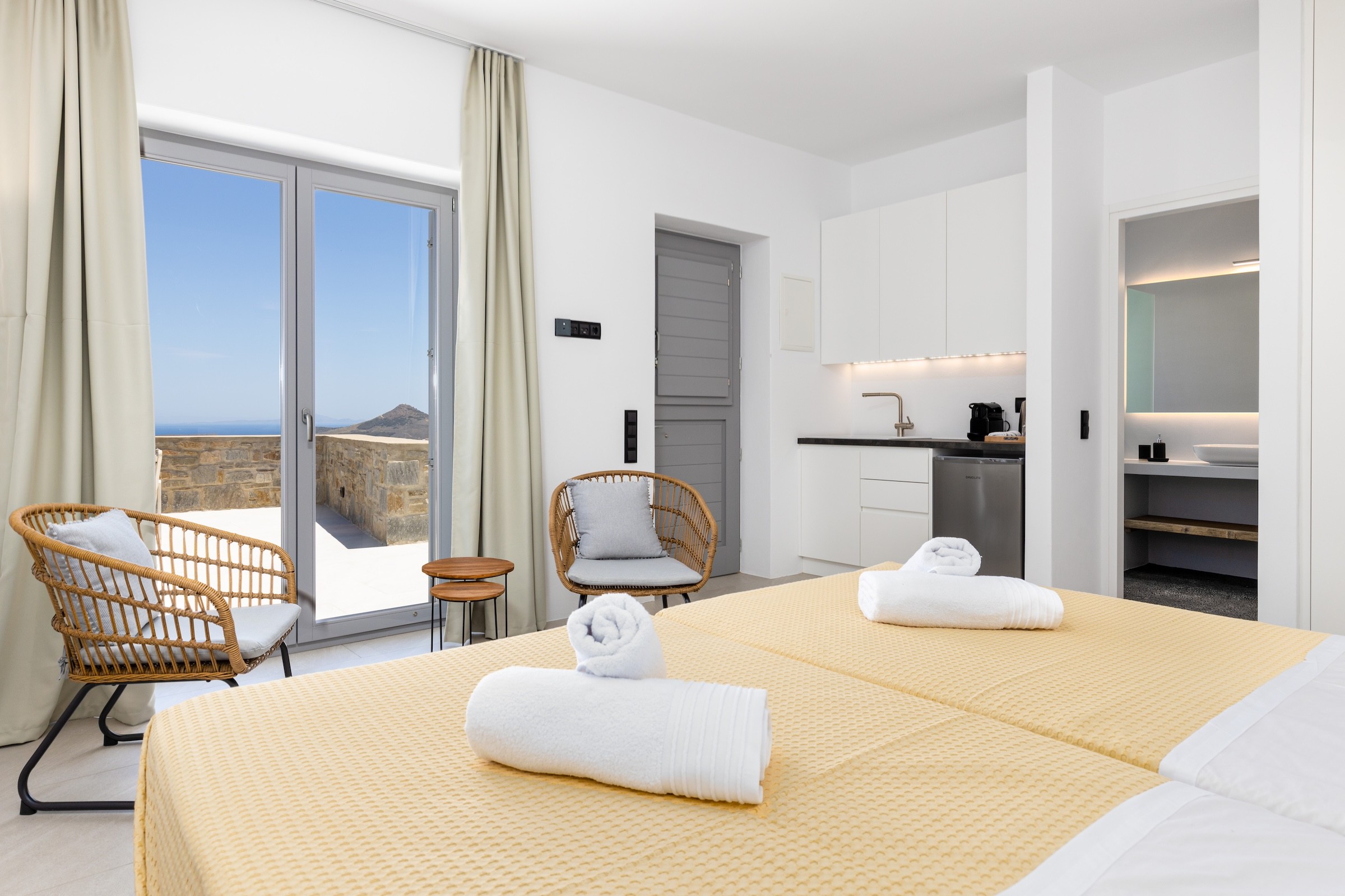 Situated in the charming village of Kostos, this villa offers privacy and breathtaking panoramic views, seamlessly blending serene village life with unmatched natural beauty.